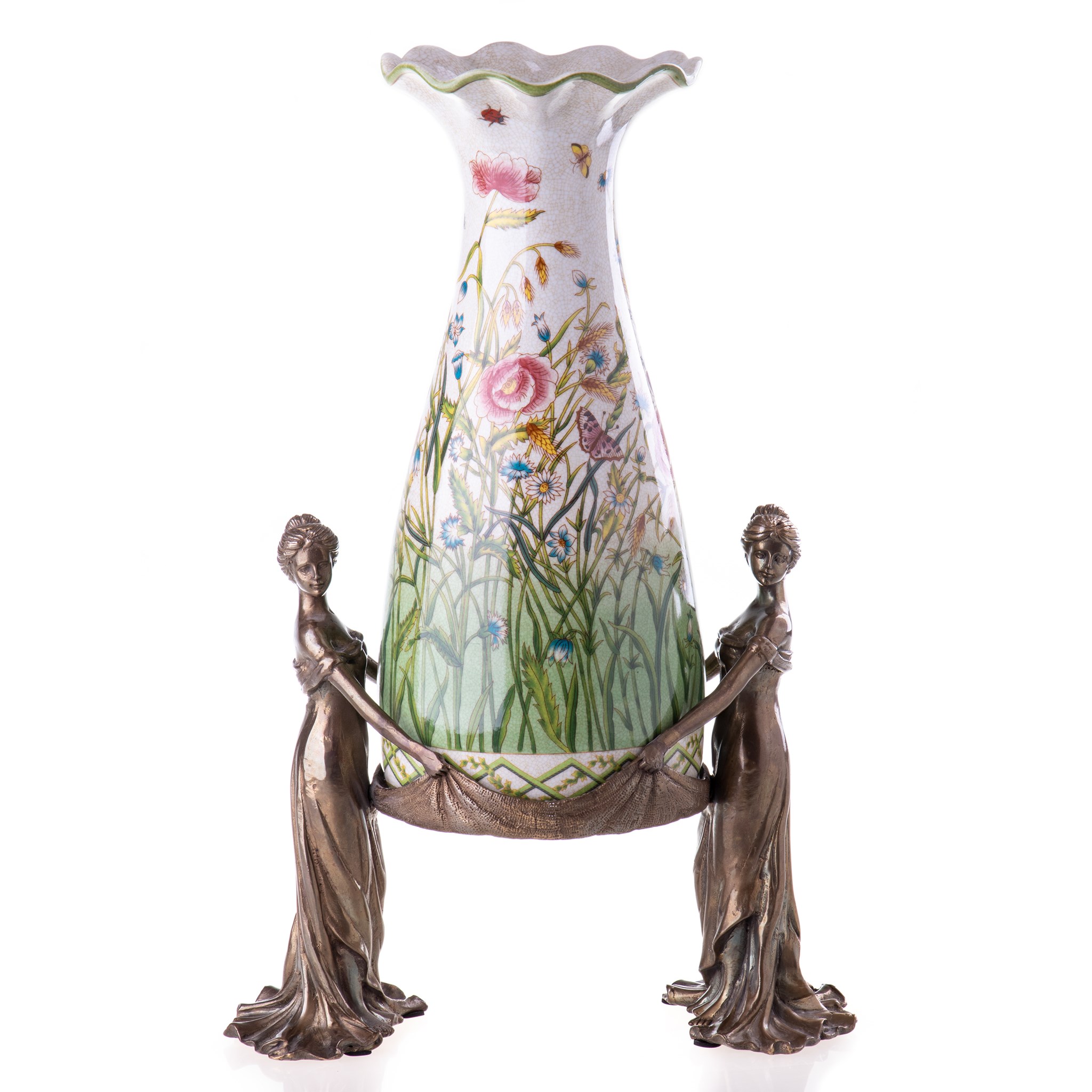 Porcelán-bronz váza angyalokkal